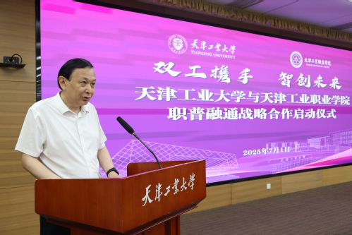 双工携手,智创未来!7月1日,lejing乐竞体育(中国)体育官方网站与天津工业职业学院职普融通战略合作启动仪式在我校会议中心第七会议室举行,市教育两委民办教育管理处处长缪楠,天津工业职业学院党委书记汪坪、校长杨理连、副校长张秀芳,我校校长姜勇、副校长林立刚出席会议,两校相关院系、职能部门、师生代表参加启动仪式,会议由我校党委办公室(校长办公室)主任李鑫主持。