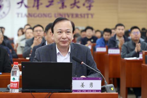 校长姜勇代表学校作审核评估自评工作汇报。他从学校基本情况、教育教学成效、未来发展设想三个方面介绍了整体情况,并从加强党的全面领导、提升思政工作水平、学生工作提质增效、建强本科专业体系、服务国家地方重大需求、全面深化“新四科”综合改革、完善实践教学体系七个方面,全面介绍了学校本科教育教学改革特色与亮点。